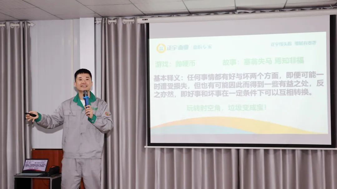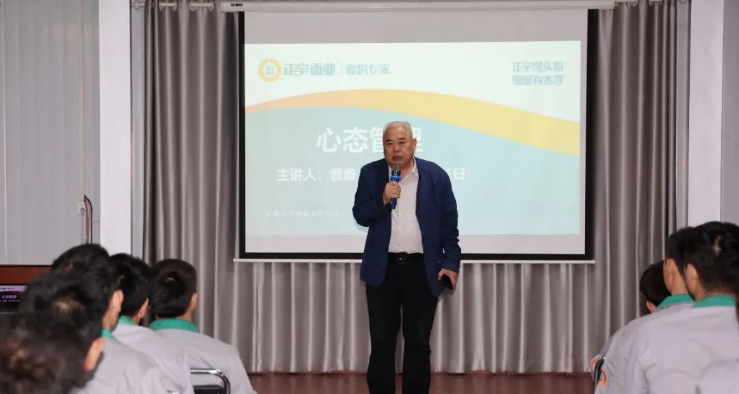 為了提升正宇家人的自我心態調節能力,強化對心態管理的系統認知,協助正宇家人及時有效地消除負面心態的影響,樹立正確的心理健康意識,2023年11月1日,安徽正宇面業集團開展心態管理專題培訓,由辦公室主任曹鑫進行授課。